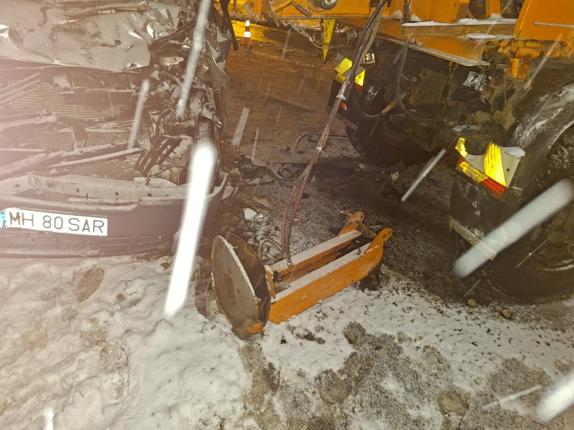 Accident între un microbuz și un utilaj de deszăpezire!