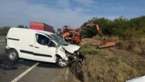 În urma impactului, autoutilitara a fost proiectată într-un autoturism condus de un bărbat,