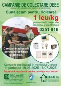 Campanie de colectare a deșeurilor de echipamente electrice și electronice în Craiova, în perioada 19 mai – 18 iulie 2025!