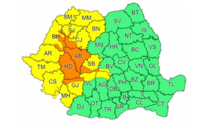 În județele Alba și Hunedoara, precum și în zona de munte a județelor Sălaj, Bihor, Cluj, Sibiu și Gorj vor fi perioade cu averse torențiale și se vor acumula cantități de apă de peste 35…40 l/mp și pe arii restrânse 50…70 l/mp. Vor fi și intensificări ale vântului, vijelii, descărcări electrice și grindină.