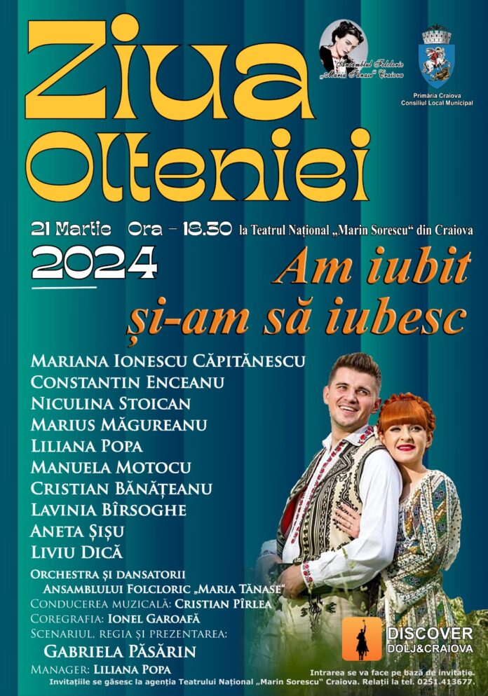 Ziua Olteniei 2024 – invitație la un periplu cultural! Dacă este martie, este … Ziua Olteniei. Și în fiecare an, din 2018 încoace, Primăria Craiova marchează ziua de 21 martie, când oltenii scot la iveală tot ce e mai frumos din viața și istoria lor.Iar ediția din acest an este bogată în evenimente, invitându-i pe curioși la un adevărat periplu cultural.