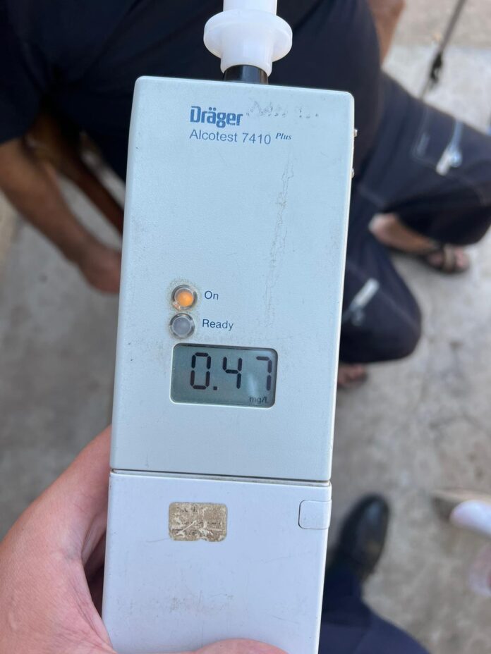 Bărbatul a fost testat cu aparatul etilotest, rezultatul fiind 0,47 mg/l alcool pur în aerul expirat. De asemenea, acesta nu posedă permis de conducere, iar tractorul nu este înmatriculat/înregistrat.