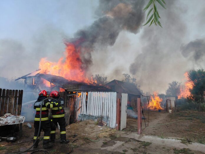 Un puternic incendiu de vegetație uscată a izbucnit pe un câmp de pe raza comunei Cerat si a cuprins 3 anexe gospodarești.