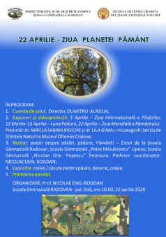 Întreaga paletă de activități cuprinsă în programul dedicat Zilei Planetei Pământ se va derula la Școala Gimnazială RADOVAN –