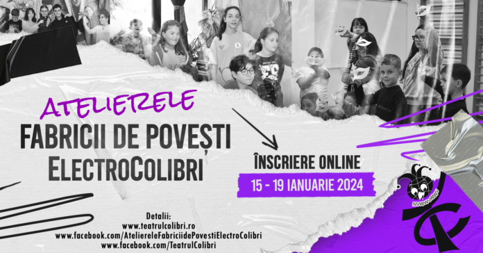 Înscrieri se fac în intervalul 15 – 19 ianuarie 2024, doar prin formular on-line, link-urile pentru fiecare atelier în parte fiind disponibile din 15 ianuarie, de la ora 09:00, până în data de 19 ianuarie – ora 14:00 pe site-ul instituţiei: www.teatrulcolibri.ro şi pe paginile de facebook: AteliereleFabriciidePovestiElectroColibri/ și TeatrulColibri.