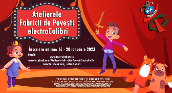 Înscrieri se fac în intervalul 16 – 20 ianuarie 2023, doar prin formular on-line, link-urile pentru fiecare atelier în parte fiind disponibile din 16 ianuarie, de la ora 00:01, până în data de 20 ianuarie – ora 14:00 pe site-ul instituţiei: www.teatrulcolibri.ro şi pe paginile de facebook: AteliereleFabriciidePovestiElectroColibri/ și TeatrulColibri.