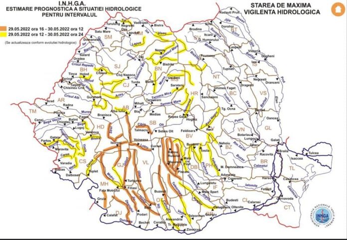 Reamintim că, județul nostru se află sub incidenţa avertizării meteorologice COD PORTOCALIU ce vizeză: instabilitate atmosferică accentuată şi ploi abundente, valabilă până în această noapte, la ora 03.00, iar în perioada 𝟮𝟵.𝟬𝟱.𝟮𝟬𝟮𝟮 𝗼𝗿𝗮 𝟭𝟲:𝟬𝟬 – 𝟯𝟬.𝟬𝟱.𝟮𝟬𝟮𝟮 𝗼𝗿𝗮 𝟭𝟮:𝟬𝟬, 𝗲𝘀𝘁𝗲 𝗶̂𝗻 𝘃𝗶𝗴𝗼𝗮𝗿𝗲 𝗮𝘃𝗲𝗿𝘁𝗶𝘇𝗮𝗿𝗲𝗮 𝗵𝗶𝗱𝗿𝗼𝗹𝗼𝗴𝗶𝗰𝗮̆ 𝗖𝗢𝗗 𝗣𝗢𝗥𝗧𝗢𝗖𝗔𝗟𝗜𝗨, este în vigoare avertizarea hidrologică COD PORTOCALIU, fiind prognozate: scurgeri importante pe versanţi, torenţi şi pâraie, viituri rapide pe râurile mici cu posibile efecte de inundaţii locale şi creşteri de debite şi niveluri pe unele râuri din bazinele hidrografice 𝗗𝗿𝗶𝗻𝗰𝗲𝗮, 𝗗𝗲𝘀𝗻𝗮̆𝘁̧𝘂𝗶, 𝗠𝗼𝘁𝗿𝘂 𝘀̦𝗶 𝗗𝘂𝗻𝗮̆𝗿𝗲 – 𝗮𝗳𝗹𝘂𝗲𝗻𝘁̧𝗶𝗶 𝗺𝗶𝗰𝗶 𝗮𝗳𝗲𝗿𝗲𝗻𝘁̧𝗶 𝘀𝗲𝗰𝘁𝗼𝗿𝘂𝗹𝘂𝗶 𝗮𝗺𝗼𝗻𝘁𝗲 𝗦.𝗛. 𝗚𝗿𝘂𝗶𝗮,, cu posibile depăşiri ale cotelor de apărare.