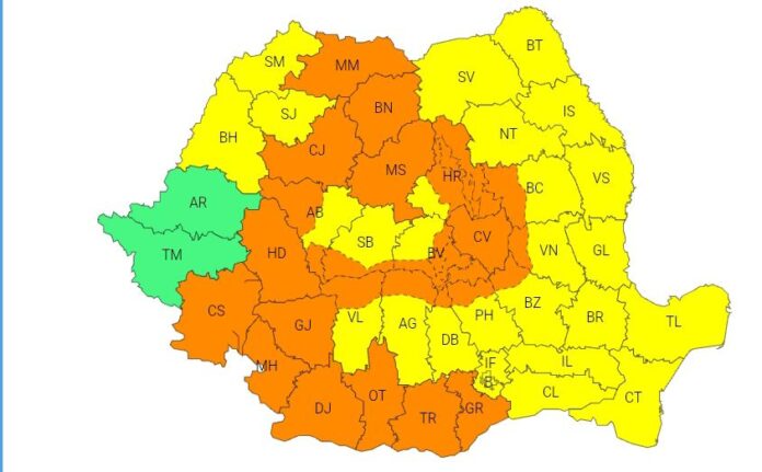 Oltenia, avertizare cod portocaliu și galben de ploi torentiale si vijelii! ANM a emis cod portocaliu și galben de ploi torentiale si vijelii.