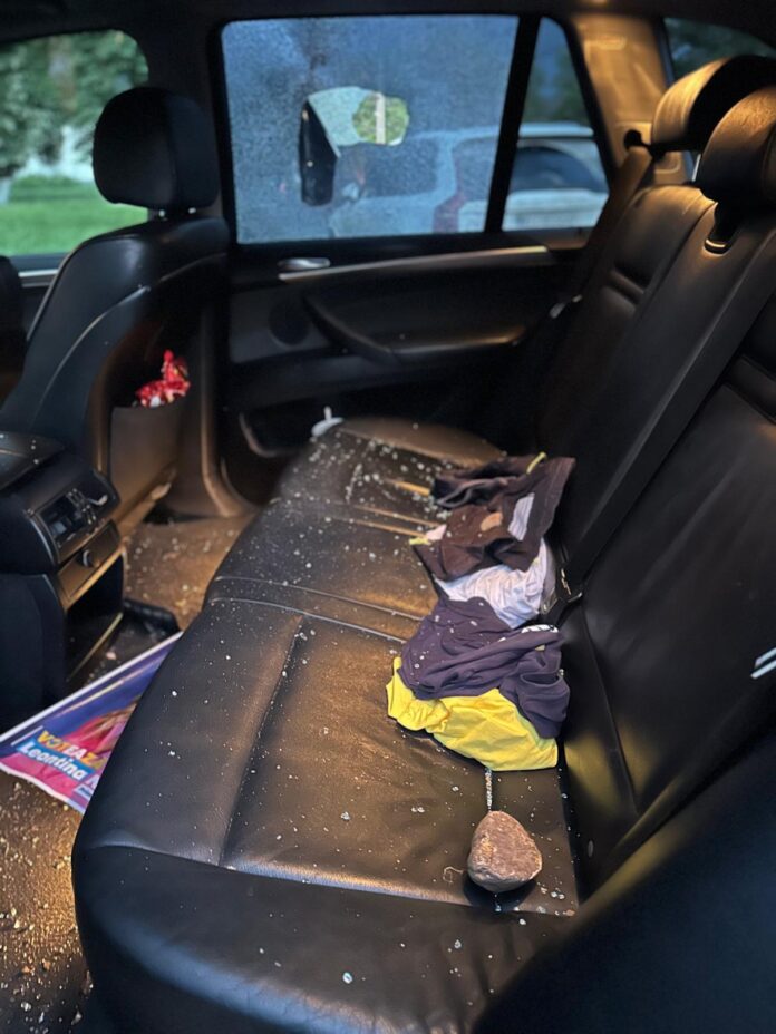 La finalul evenimentului, unul dintre membrii PNL, consilier local în comuna Orodel, a descoperit că mașina sa fusese vandalizată. Parbrizul și geamul lateral au fost sparte cu pietre, conform imaginilor surprinse la fața locului. În momentul în care colegul nostru s-a apropiat de vehicul, el și alți trei martori au observat o mașină din localitate plecând din apropierea mașinii vandalizate.